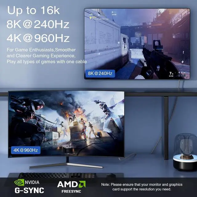 Compatibility: Unlock universal compatibility for your gaming setup. Our DisplayPort to DisplayPort 2.1 / 2.0 cable works with all standard DP ports offering a seamless link between your powerful graphics cardbe it a new RTX 50 series (5090D/5080/5070Ti/5070/4090/4080/4070Ti/3090/3080 Ti/3070) or AMD 7900and your high-performance monitor from brands like compatible with Odyssey Alienware or ROG Swift. Enjoy G-Sync and FreeSync support for fluid gameplay.