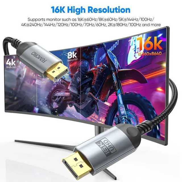 Bandwidth: DP 2.1 cable supporting uncompressed 16K@60Hz 8K@120Hz and buttery-smooth UHD 4K@240Hz WQHD 2K@360Hz FHD 1080P@360Hz (DSC 1.2 a) backward compatible with DP 2.0 / 1.4 / 1.2 and supports up to 80 Gbps bandwidthUltimate