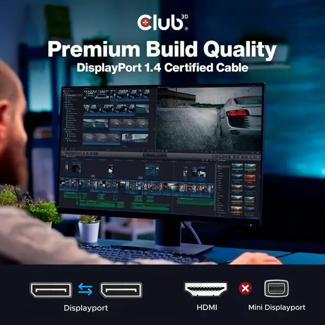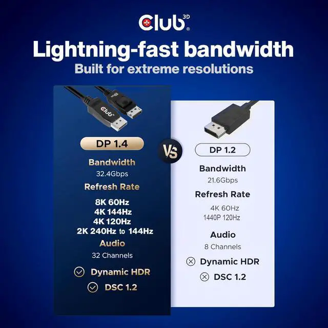 HIGH QUALITY: Supports resolutions up to 8K @ 60Hz 5K @ 60Hz and up to 4K UHD (3840x2160 @ 144Hz) making it ideal for use with high-resolution monitors and display devices. VESA Certified cable with 28 AWG copper and 3-layer shielding.