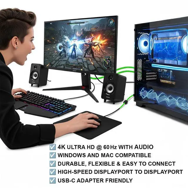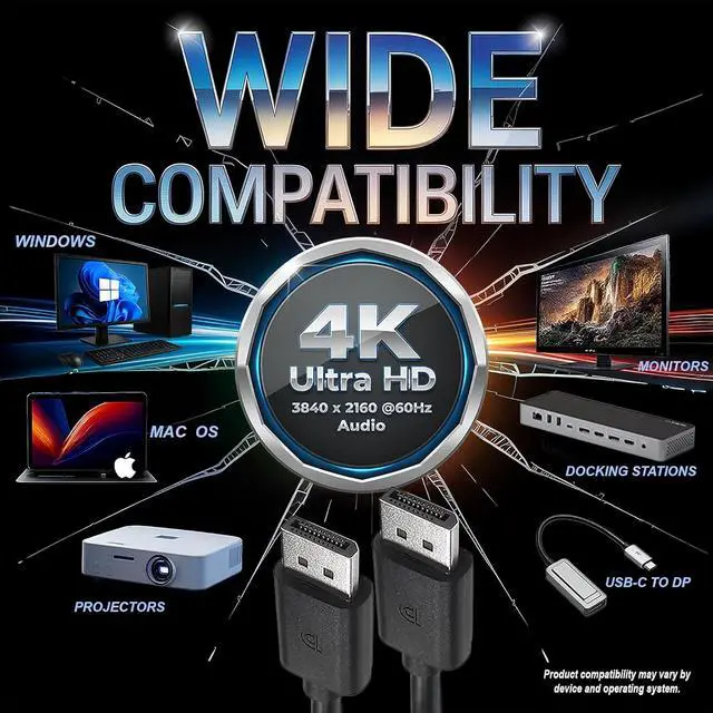 ?? 4K ULTRA HD @ 60? Hz PERFORMANCE Tested with NVIDIA RTX? 4090 and U3219Q for stable flicker? free 3840×2160 video; ideal for gaming streaming and professional workflows.?? HIGH? SPEED DISPLAYPORT TO DISPLAYPORT Male? to? male DP cable connects PCs laptops GPUs and docking stations to monitors or projectors with zero signal loss or adapters.?? HDR? READY WITH CRISP COLOR Supports HDR metadata pass? through and full DisplayPort 1.2 bandwidth for vivid visuals; backward? compatible with 2560×1440 1080p and lower resolutions.