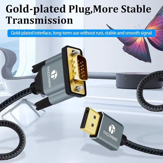 Excellent TransferThzzhnno DisplayPort to VGA 3.3F eet Cable utilizes better chip solution and professional multiple shielding for instaneous and accurate data streaming. Incredible performanceThe DisplayPort male to VGA Male converter supports resolutions up to 1920x1080@60Hz (1080p Full HD) including 720p 1600x1200 1280x1024 for high definition monitors or projectors Exquisite compact structural design make all products clearer image quality and richer colors. Meet Your Needs Transmit high definition video from your computer to a monitor for video streaming or gaming; Connect and configure your monitor for an Extended Desktop or Mirrored Displays. Important NotesThis is a displayport to vga cable it is not bidirectional It only does displayport to vga.
