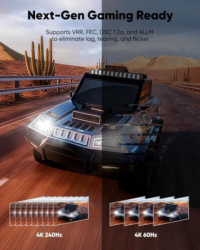 Gaming Ready: this DP80 cable supports VRR FEC DSC 1.2 a and ALLM to eliminate lag tearing and flicker. Enjoy ultra-smooth gameplay with HDR10+ 32-bit audio and seamless multi-monitor setups powered by MST technology. Perfect for high-refresh 4K/8K gaming and immersive AAA titlesPremium