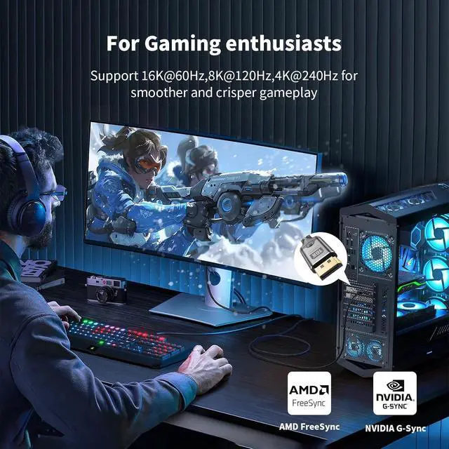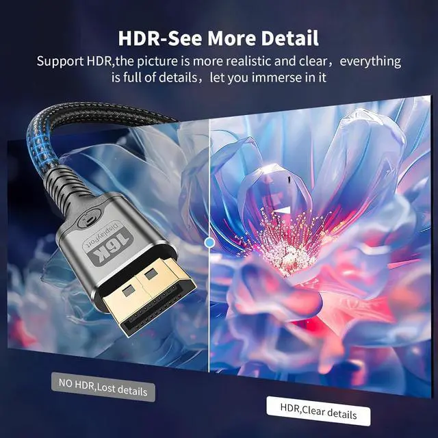& Backwards Compatibility: This displayport cable 2.1 offers a 40Gbps data rate for lossless stable connections. Its fully backwards compatible with DisplayPort 1.2 / 1.4 ensuring seamless integration with your existing PCs monitors and GPUs. Unleash 16K