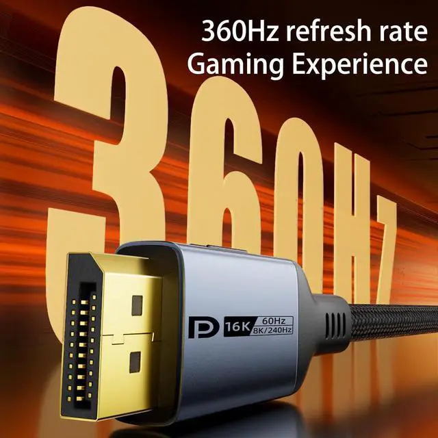 DisplayPort 2.1 Cable: DiamondTiger 16K DisplayPort cable supports amazing 16K resolution at 60Hz 8K@240Hz and 4K@480Hz. And backward compatible with DisplayPort 1.4 and 1.2. It connects from DP to DP for better visual experience no driver or software required.