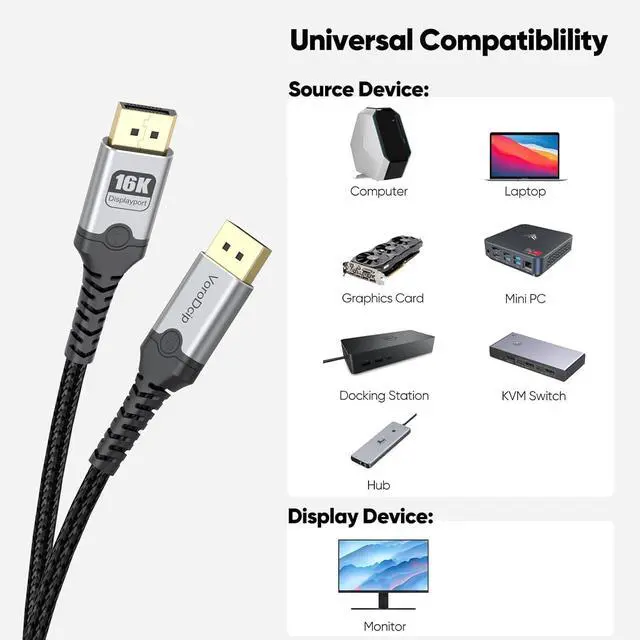 Game Enthusiasts: The 16K dp cable is specially designed for gamers Multi-Stream Transport (MST) enables seamless multi-monitor setups Variable Refresh Rate (VRR) and Auto Low Latency Mode (ALLM) offer an even smoother gaming experienceMultiple