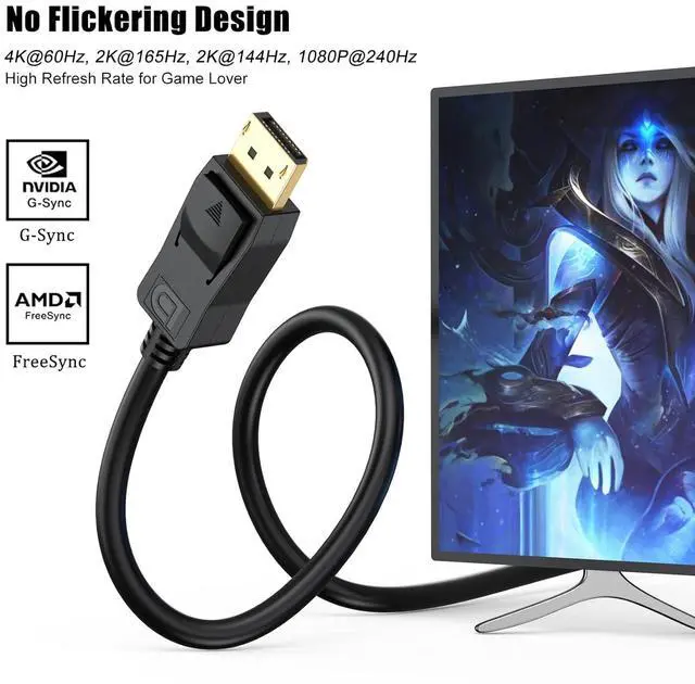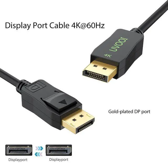 Transmits both high-definition video and audio from computer or tablet to HD monitor display; Supports video resolutions up to 4K (Ultra HD 3840x2160 2K@165Hz&144Hz) and 1080P (Full HD) and flawless audio pass-through for uncompressed digital 7.1 5.1 or 2 channelsDP to DP cable gold-plated connectors bare copper conductors and foil & braid shielding combine together to provide both superior cable performance and reliable connectivityCompatible with all DP port devices such as DisplayPort PC Docking station Display Port Swich Display Port Splitter DisplayPort MST HubDisplayport cable has a release button connection with a release button that must be depressed before unpluggingUVOOI provide unconditional 24-month warranty ensures long-time satisfaction of your purchase