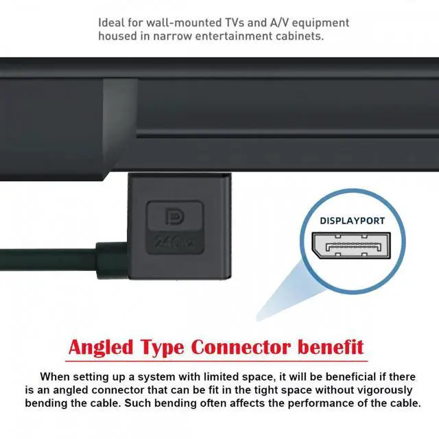 Ultrafine LeftAngledDisplayPort 1.4 DP Male to Female Extension Cable 8K 60hz 4K 144hz for Desktop Laptop Monitor Graphics Card