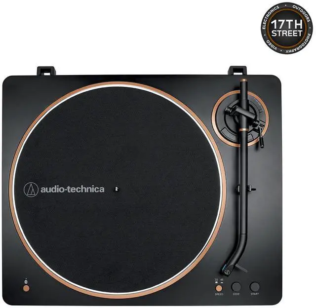 Designed for both beginners and experienced listeners, the AT-LP70XBT-BZ features 33-1/3 and 45 RPM speeds, a die-cast aluminum platter with felt mat, and an integrated AT-VM95 Dual Moving Magnet phono cartridge with replaceable AT-VM95C stylus for accurate tracking and warm, detailed analog sound. A vibration-dampening three-piece chassis and J-shaped tonearm help reduce resonance, while Bluetooth® wireless audio with aptX® support allows seamless streaming to compatible speakers or headphones.