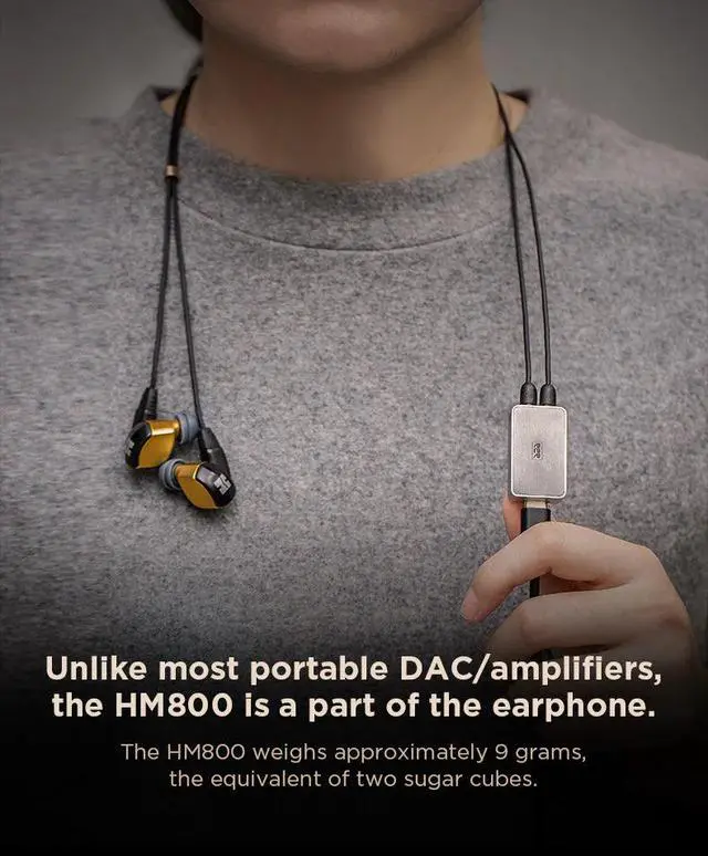 Unlike most portable DAC/amps, the HM800 is truly portable. At only 9 grams, it weighs approximately the same as two sugar cubes. Run it between your earphones and a USB-C cable, and you might not even notice it?s there.