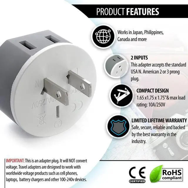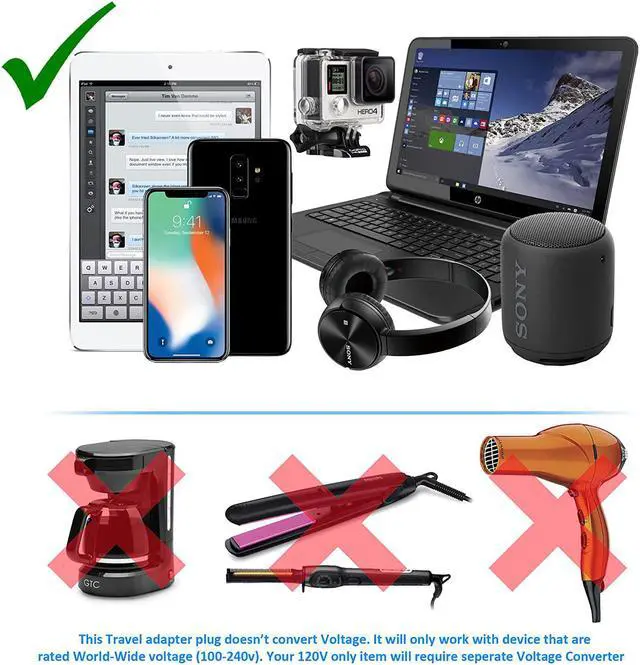 Please make sure that your device supports 100-240V when traveling overseas in order to use with this adapter.