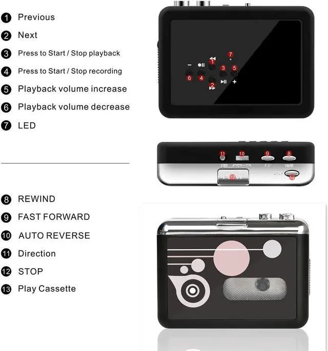 Just put your tape in and play, then press record button and wait. After all songs are played, it will automatically save the mp3 files to your USB flash drive. Then turn the cassette to the other side and record it.