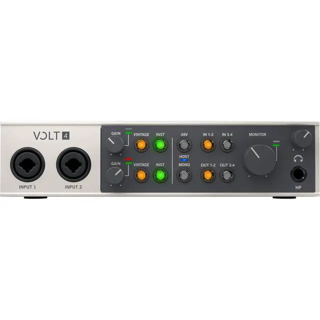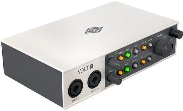 The Volt 4 is not just an audio interface, it's a complete desktop production studio that's built to withstand years of home and mobile recording. Its sleek, vintage-inspired industrial design is not only stylish but also built to last, making it a reliable choice for both professional and amateur audio enthusiasts. With the Volt 4, you can easily record your voice or guitar with album-ready sound using the Vintage Mic Preamp mode. Plus, it comes with a 30-day free trial to UAD Spark, giving you access to an ever-expanding library of world-class plug-ins and instruments for a low monthly price.