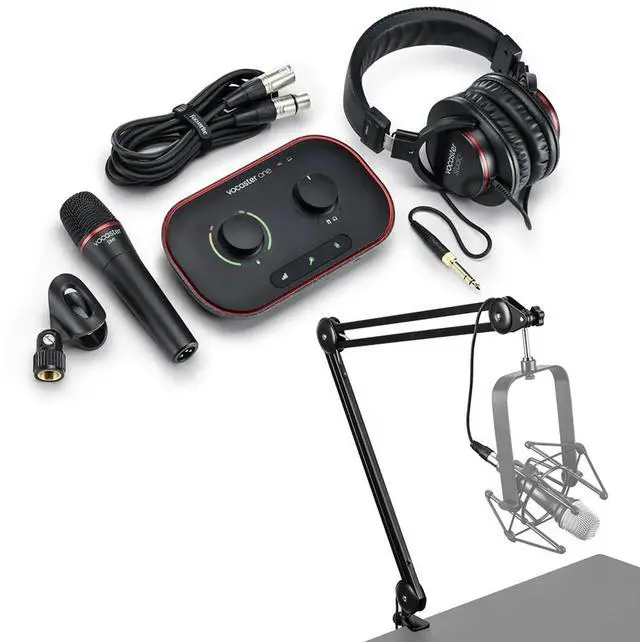 Take your show furtherTake your show further with Vocaster One Studio, which includes our dynamic microphone and closed-back headphones so that you can elevate your podcast straight away. Quality inOur Vocaster DM1 dynamic mic, with built-in grille and pop filter, focuses on making you sound like you're in the studio, so you won't need to worry about getting a professional sound. Quality outHP60v closed-back studio headphones let you hear your show as the world will, and stop the mic from picking up your show mix - avoid any unwanted distractions for your audience.