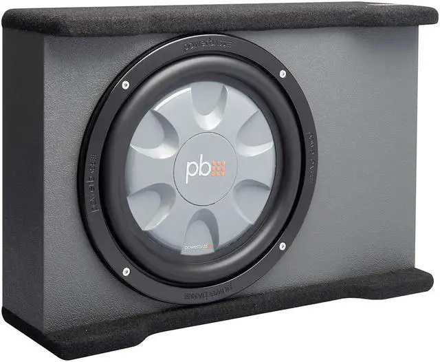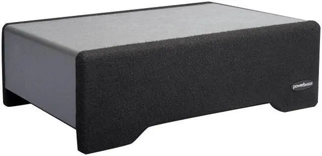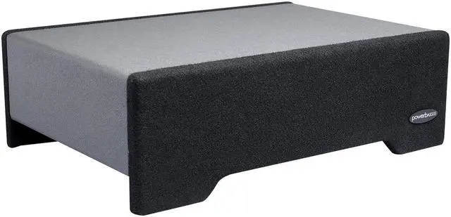 Powerbass latest release is a down firing single 10"-inch woofer enclosure designed for pickups, crew cabs, and king cabs. The PS=DF110T uses an "S" thin woofer and is finished in a mix of grey vinyl and black carpet. By having the woofer point downward helps load the front of the woofer for more bass output than a standard front firing enclosure. It's small size makes it an instant winner for producing the bass that us missing in your system without taking up a lot of room or breaking the bank.