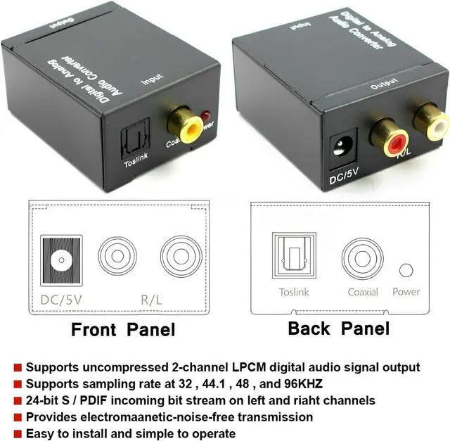 Input audio connector: 1 x Toslink, 1 x RCA (Coaxial)