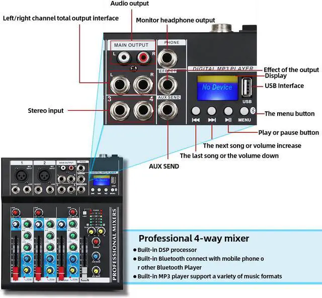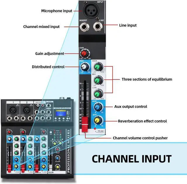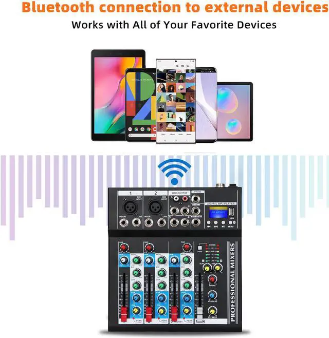 The 4-channel audio mixer sound board can accommodate multiple devices