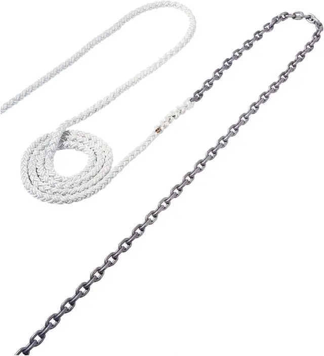 20' of 5/16" HT spliced chain to 200' of 5/8" Nylon Brait rope