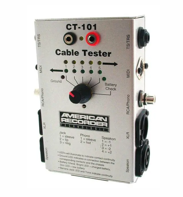 Includes battery and test probes for testing other types of cables for continuity. Heavy duty steel cabinet. Also features a battery test mode.