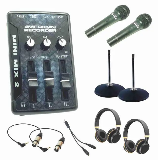 Get started creating podcast and interviews with this all-in-one recording bundle. Simply connect microphones to the mixer and connect the mixer to your computer, tablet or phone to record on device. You can choose between USB or analog output. In addition, headphones are included that allow users to monitor the audio level while recording. Use in the office or location recording. Small and lightweight makes it easy to travel with.