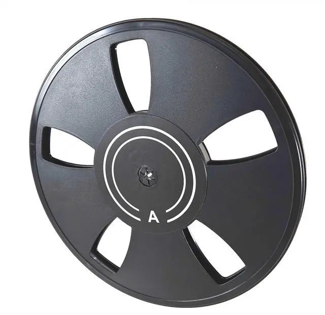 1/4 x 10.5 inch black plastic audio tape reel. Includes white reel box
