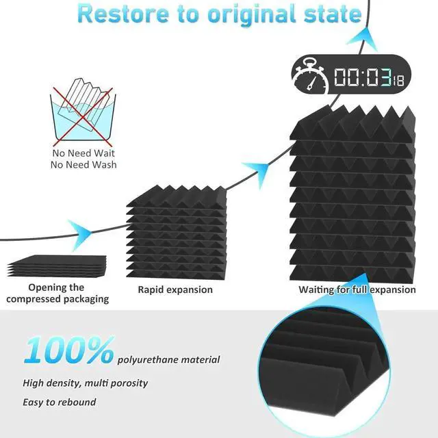 Coverage area: With 24 pcs/pack and 1 sqft/pcs, the sound deadening wall panels can cover a total of 24 square feet, using compressed packaging which reduces by one-third.