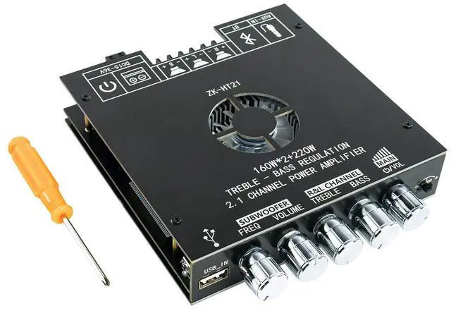 ZK-HT21 TDA7498E Bluetooth Amplifier Board 160W×2+220W Subwoofer 2.1 Channel Audio Receiver Power Amplifier Module with Treble and Bass Control for DIY Speakers