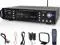 The pro audio digital amp box supports headphone, dual USB, SD card, MP3, FM tuner, AUX, CD player, 2 microphone input w/ echo for karaoke or event hosting, RCA audio input and output dedicated for subwoofer w/ screw-type speaker terminals.