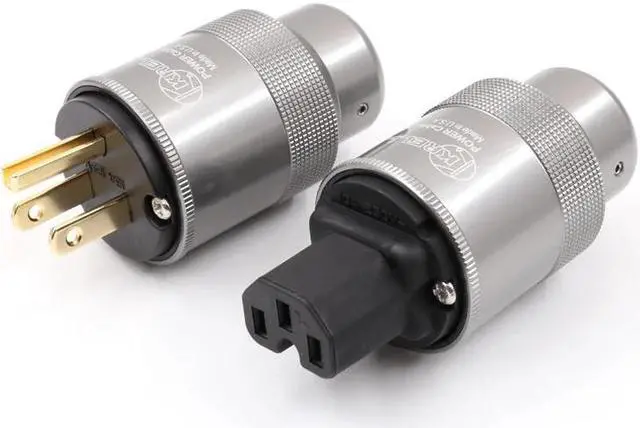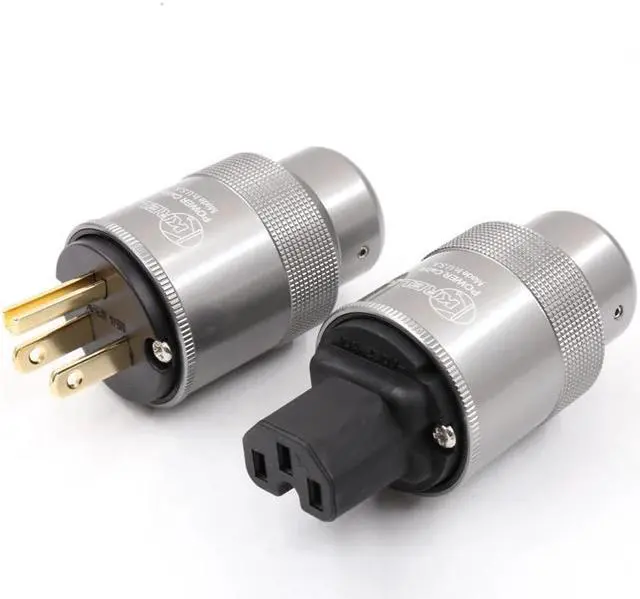 US version gold plated power plugs AC audio plugs connection power cable Material: 24K Gold-Plated Dimensions: About 48mm body length x 38mm diameter Package including: one pair