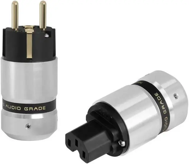 One Pair 3U Gold Plated Schuko Power plug IEC Connector for Mains power cable