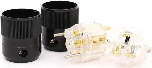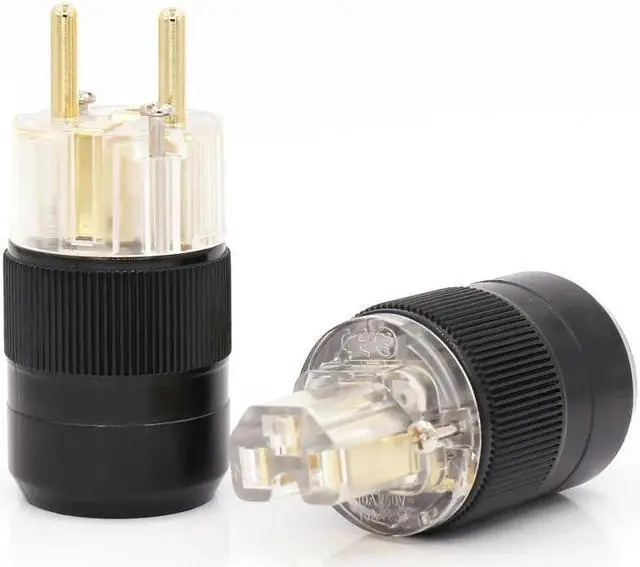 One pair Transparent 24K Gold Plated EU European Schuko Power Connector IEC Plug for audiophile diy cable