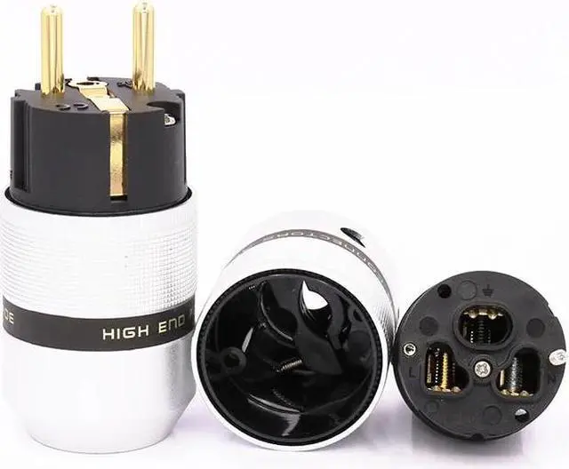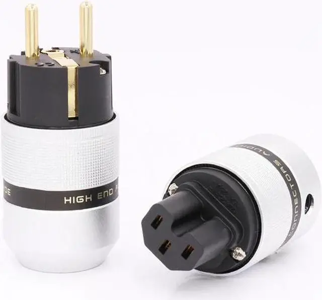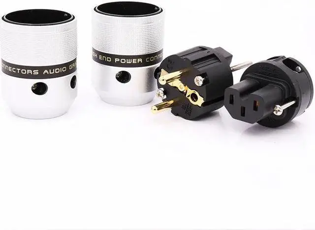 One Pair high performance 24K Gold Plated Schuko Power connector+IEC Female Plug with DIY audio power cable