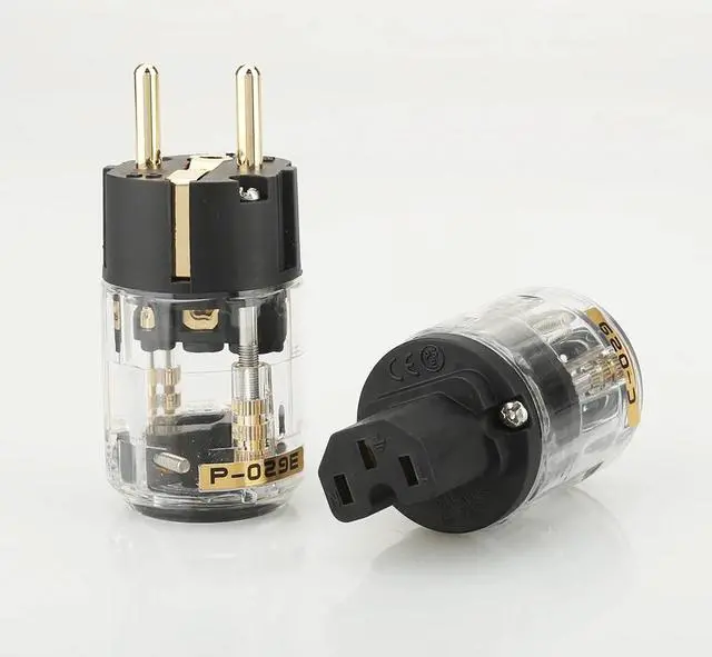 One pair Gold plated P-029E/C-029 EU version Power Plug IEC connector for audio power cable