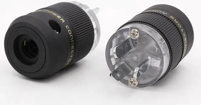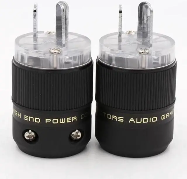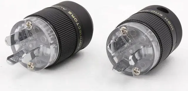 2pcs Transparent Rhodium AU Mains Power Plug Male Copper Connector Cable Cord 3 Pin HiFi