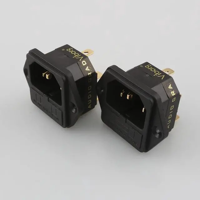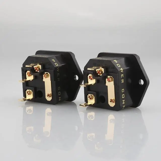 One piece VI-06G Brass 24K Gold plated IEC AC Inlet Power Socket Audio Grade Non Solder