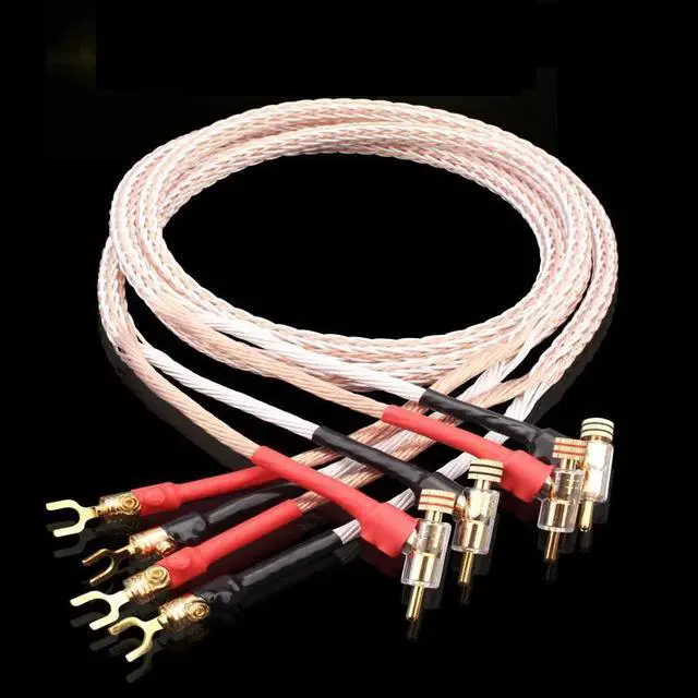 audio Hi-end DIY HIFI Gold Rhodium Plated Y shape spade to banana plug 8TC 16 core speaker cable Cord Wire