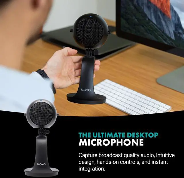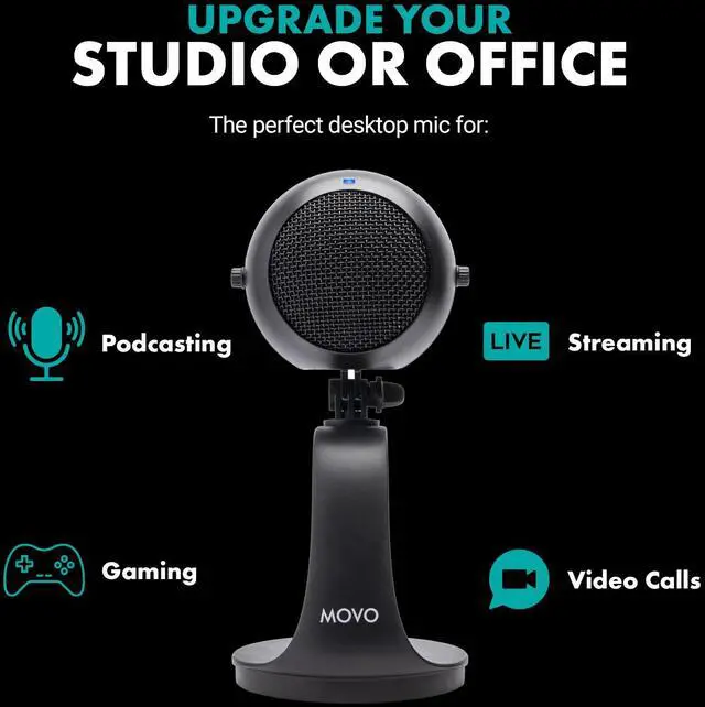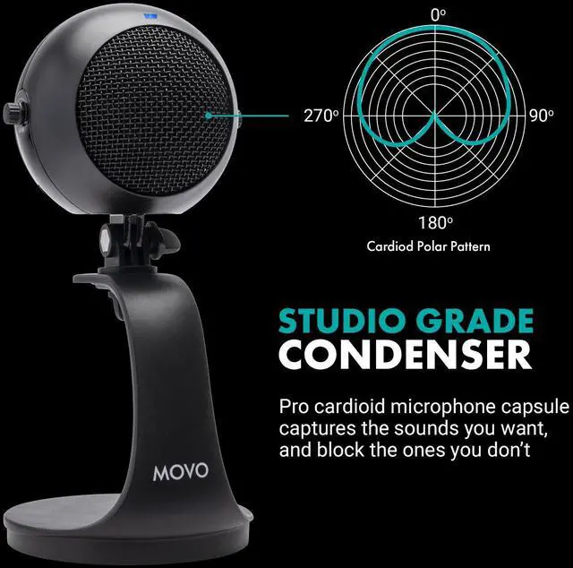 Movo's WebMic USB condenser microphone will bring crystal clear audio to your desk setup. The WebMic features a sensitive, directional cardioid microphone capsule that captures broadcast-quality audio from the front of the microphone while eliminating background noise from behind the mic.