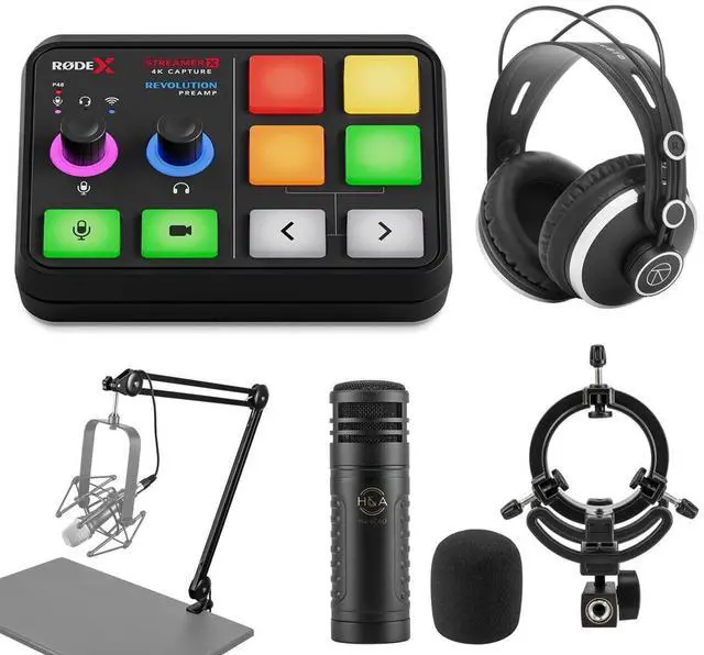 Take your content creation to the next level with the X Streamer X Audio Interface and Video Streaming Console Bundle. This professional-grade bundle integrates a video capture card, audio interface, and control surface into one compact, high-quality device, designed to make your audio and video recording and streaming endeavors incredibly seamless. The Streamer X features studio-grade audio inputs, perfect for XLR microphones, instruments, headsets, and Rode wireless microphones. It's equipped with an ultra-low-noise, high-gain Revolution Preamp and powerful APHEX audio processing, ensuring pristine sound quality for all your recordings and live streams.