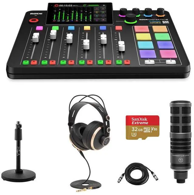 The RODECaster Pro II is the ultimate audio production solution for streamers, podcasters, musicians and content creators. Combining revolutionary features with superior sound quality, unmatched ease of use and endless customizability, it is all any creator will ever need to record incredible audio. Content Creation Made EasyCombining all of the elements typically found in a professional podcasting, streaming or studio setup into one powerful, easy-to-use console, the RODECaster Pro II simplifies the audio production process, allowing any creator to get set up to record high-quality content in seconds. The large ( 5.5 -inch) high-definition, full-color touchscreen with haptic feedback, tactile rotary encoder, bright RGB color-coding and hands-on controls makes navigating the RODECaster Pro II super simple.
