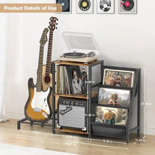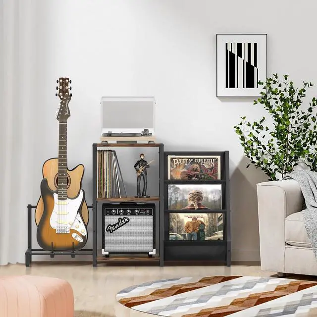 Multi-scenario use: The guitar and record player stand combines industrial and retro style. The vinyl record storage with guitar stand is suitable for living room, home music studio and bedroom.