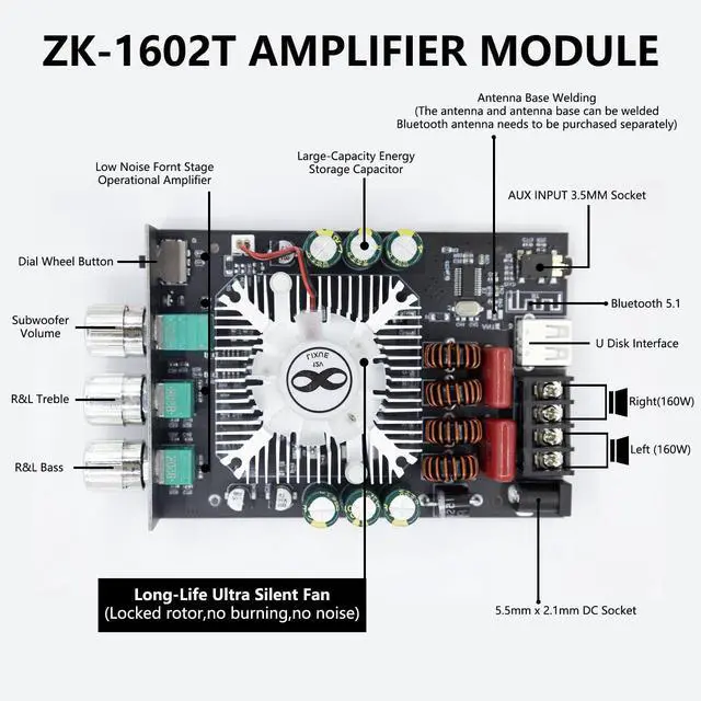 1 x Audio amplifier module with 5 buttons 2 x Shell 5 x Button 4 x Gold Nut 4 x Gold Screw 8 x Black Screw 1 x Screwdriver with 1x power cord