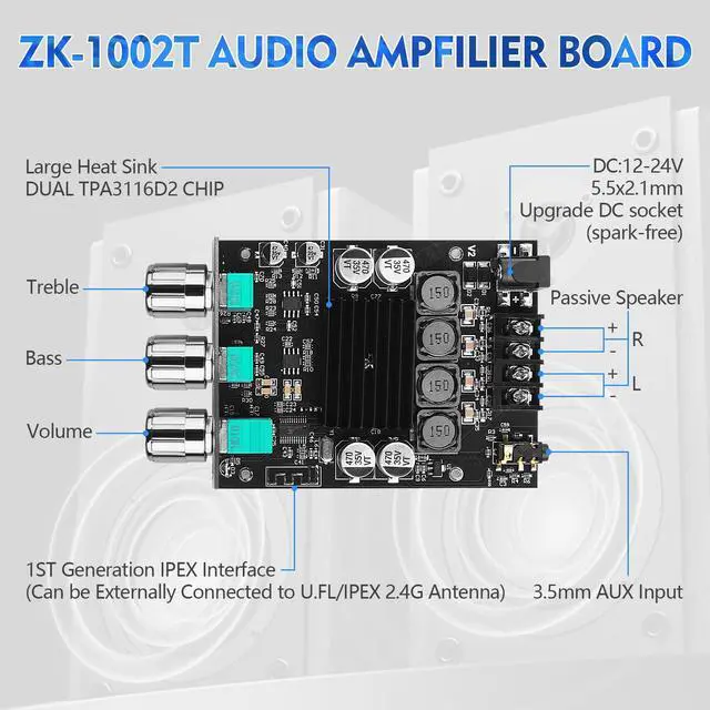 ZK 1002T Bluetooth 5.0 Amplifier Board