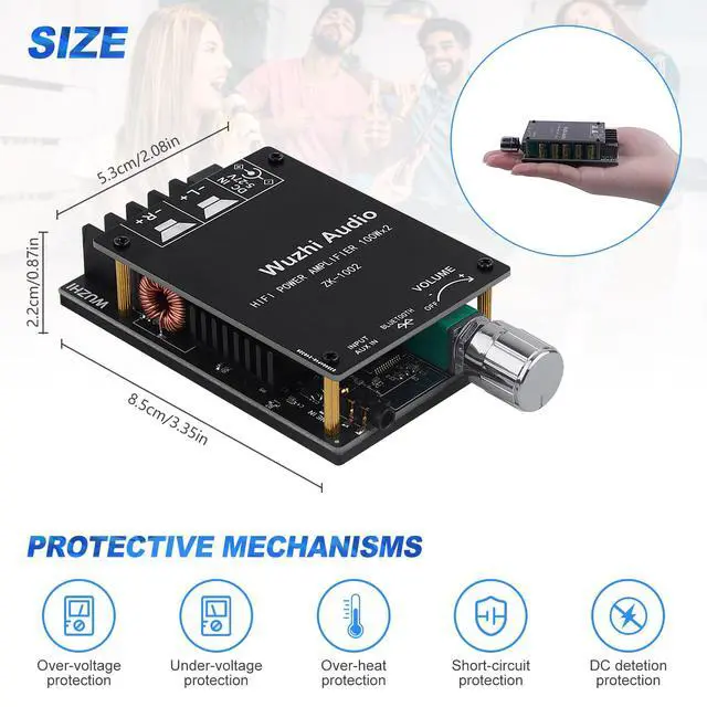 ZK-1002 Bluetooth 5.0 Amplifier Board 100W x 2 HiFi Subwoofer Audio Power AMP with Volume Control, BT and AUX Inputs, DC 5-27V 2.0 CH Stereo AMP Module for Home DIY Speakers, Password Free