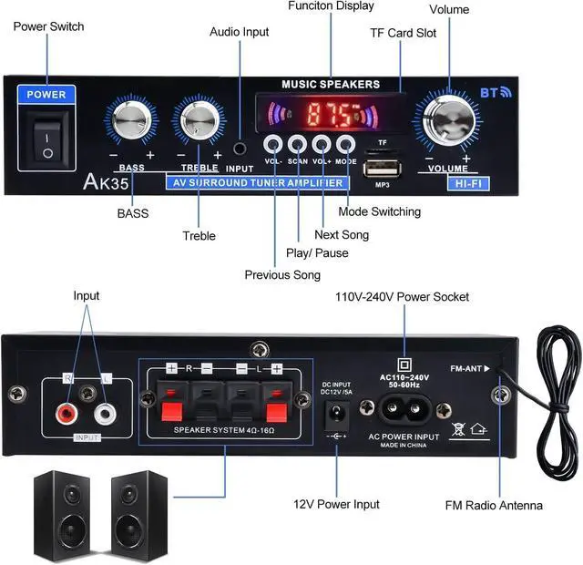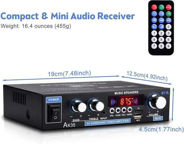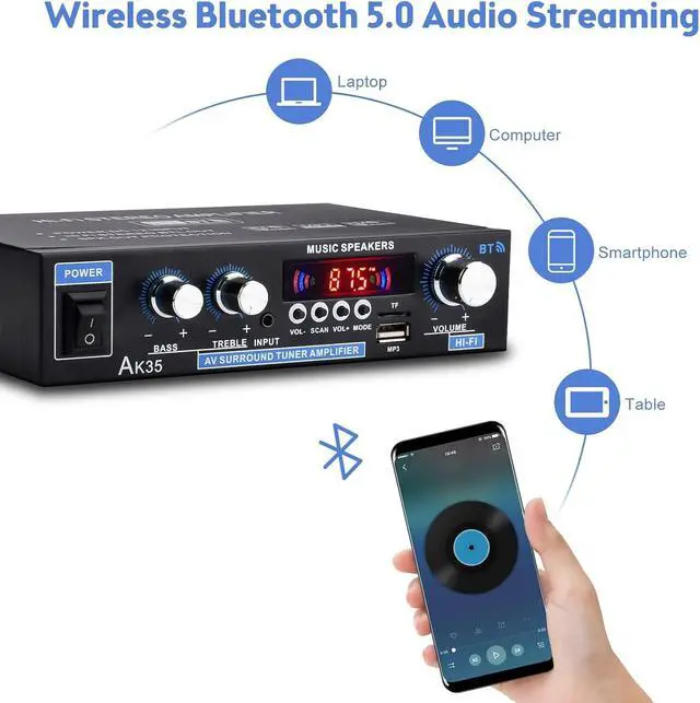 Bluetooth amplifier with 200W peak power powerful thrust, excellent audio processing chip, low distortion provides more powerful sound.