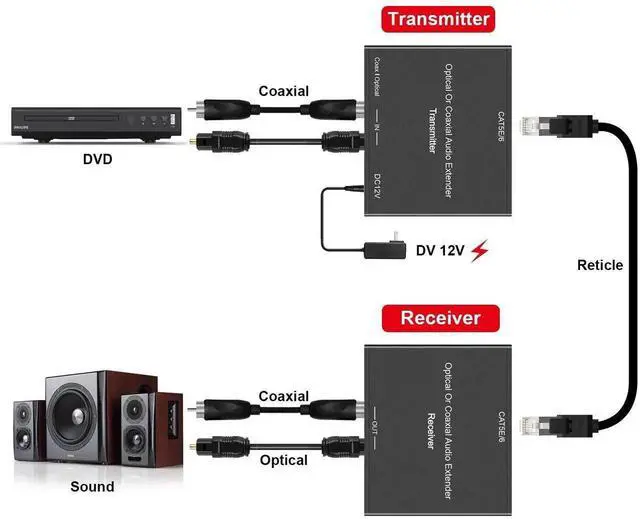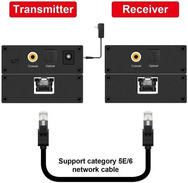 Supports most standards to transmit one uncompressed lossless PCM audio or compressed 5.1/7.1 surround sound, such as Doby Digital Plus or DTS High Resolution Audio over one Cat5e/6 Cable S/PDIF and Toslink digital audio up to 500ft via cat5e/6.