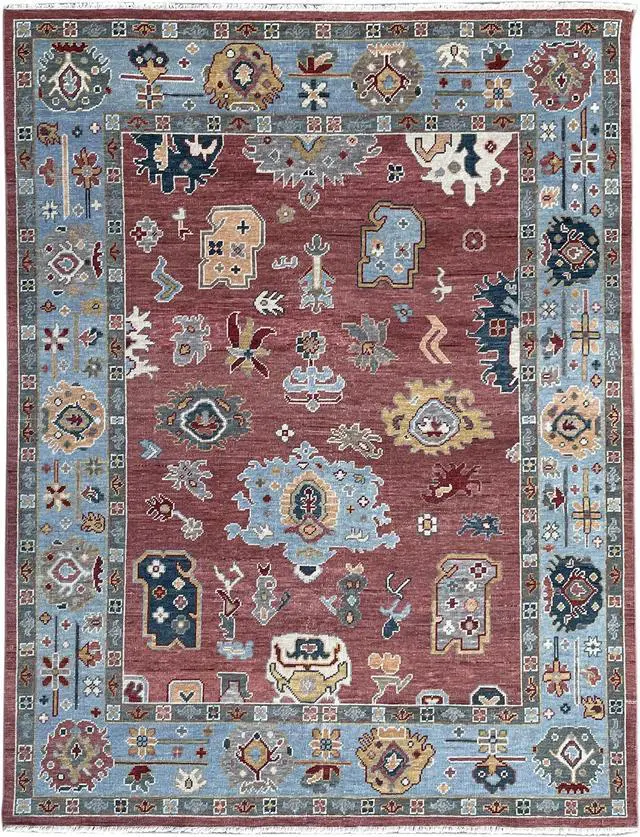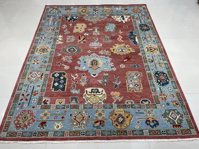 Hand Knotted Wool Rust / SKY BLUE Traditional Classic Colorful Mahal Classic Rug. Timeless style and elegance of ancien gorgeous Mahal design. Add some warmth to your floors with this stunning hand spuned wool area rug. Place it in your living room to bring some light under heavy furniture. KEY_TAB Taking three or four months to complete this rug was handcrafted by skilled makers using a traditional hand-knotting technique a trade that’s been passed down and preserved for generations.. KEY_TAB Handmade in India from 100% wool with a 0.5 inch pile this rug is great in spaces with heavy foot traffic thanks to its short stature. Hand knotted rug adds style and warmth to a space. This design is centered around a Persian–inspired ornamental medallion and has a certain global appeal. This rug will last you for many years to come under everyday usage and foot traffic. Wool is a stain resistance material by it's nature and is very easy to clean..