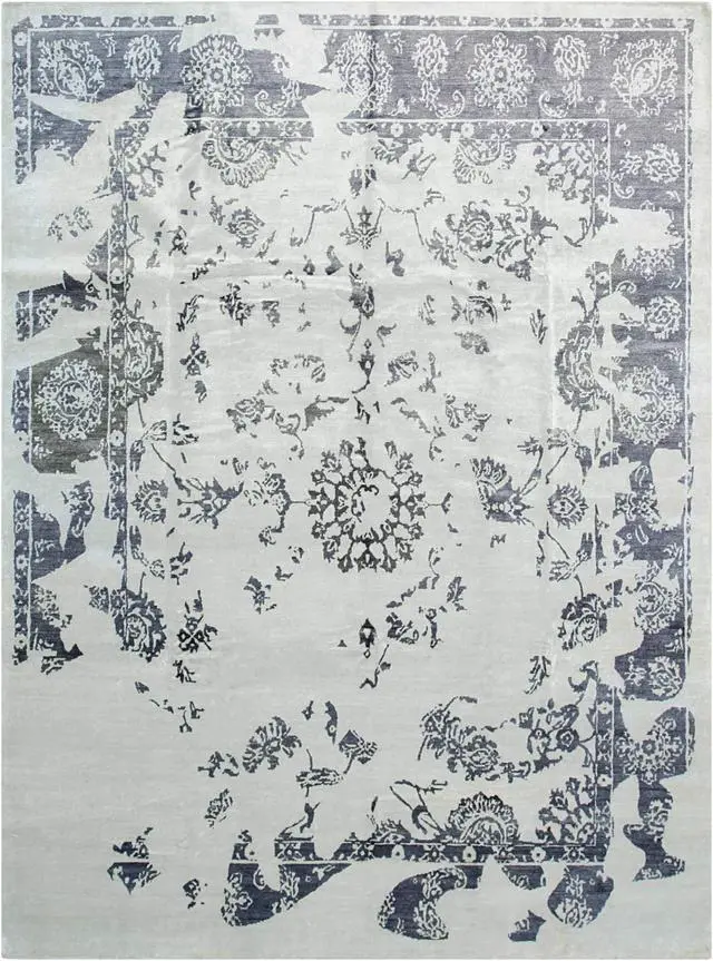 Hand Knotted Viscose Ivory Transitional Modern Modern Tabriz Rug. Add some warmth to your floors with this stunning hand spuned wool area rug. Place it in your living room to bring some light under heavy furniture. KEY_TAB Taking three or four months to complete this rug was handcrafted by skilled makers using a traditional hand-knotting technique a trade that’s been passed down and preserved for generations.. KEY_TAB Handmade in India from 100% wool with a 0.5 inch pile this rug is great in spaces with heavy foot traffic thanks to its short stature. Hand knotted rug adds style and warmth to a space. This design is Khotan rug style and has a certain global appeal. The rug has a dense soft pile and excellent quality to ensure that you will enjoy the look and feel of your rug for years to come..