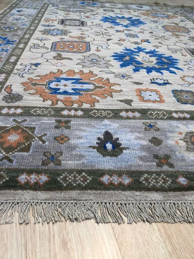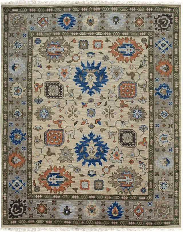 Hand Knotted Wool Beige Traditional Classic Modern Knot Rug. Add some warmth to your floors with this Wool and Silk area rug. Place it in your living room to bring some light under heavy furniture. . KEY_TAB Taking three or four months to complete this rug was handcrafted by skilled makers using a traditional hand-knotting technique a trade that’s been passed down and preserved for generations.. KEY_TAB Handmade in India from 100% wool with a low pile this rug is great in spaces with heavy foot traffic thanks to its short stature. Hand knotted rug adds style and warmth to a space. This design is Khotan style and has a certain global appeal. The rug has a dense soft pile and excellent quality to ensure that you will enjoy the look and feel of your rug for years to come..