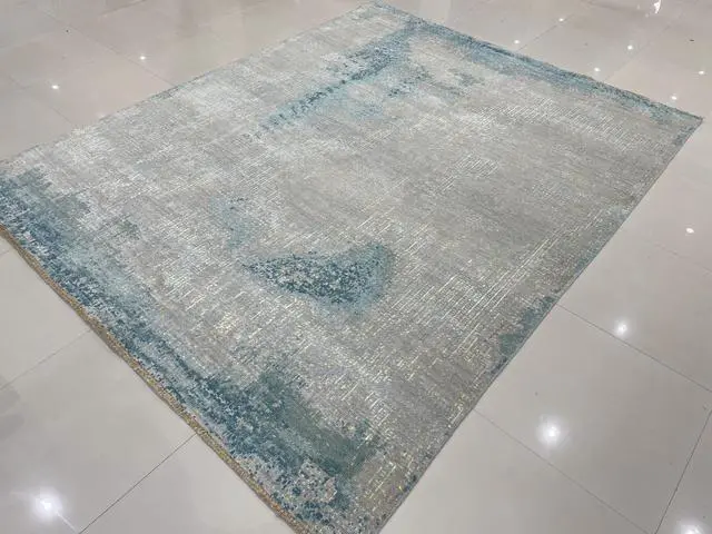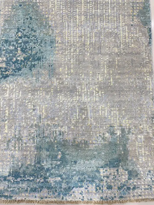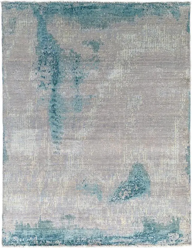 Gray / AQUA Transitional Abstract Traditional Knot Area Rug. Add some warmth to your floors with this stunning hand spuned wool area rug. Place it in your living room to bring some light under heavy furniture. KEY_TAB Taking three or four months to complete this rug was handcrafted by skilled makers using a traditional hand-knotting technique a trade that’s been passed down and preserved for generations.. KEY_TAB Handmade in India from 100% wool with a 0.5 inch pile this rug is great in spaces with heavy foot traffic thanks to its short stature. Hand knotted rug adds style and warmth to a space. This design is centered around a Persian–inspired ornamental medallion and has a certain global appeal. This rug will last you for many years to come under everyday usage and foot traffic. Wool is a stain resistance material by it's nature and is very easy to clean..