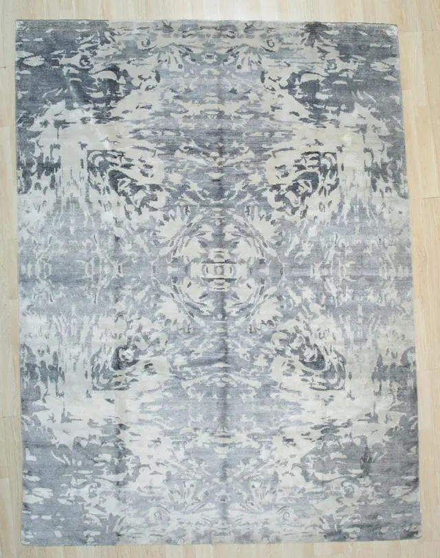 Hand Knotted Viscose Ivory Classic Modern Modern Rug. Add some warmth to your floors with this stunning hand spuned wool area rug. Place it in your living room to bring some light under heavy furniture. KEY_TAB Taking three or four months to complete this rug was handcrafted by skilled makers using a traditional hand-knotting technique a trade that’s been passed down and preserved for generations.. KEY_TAB Handmade in India from 100% wool with a 0.5 inch pile this rug is great in spaces with heavy foot traffic thanks to its short stature. Hand knotted rug adds style and warmth to a space. This design is Khotan rug style and has a certain global appeal. The rug has a dense soft pile and excellent quality to ensure that you will enjoy the look and feel of your rug for years to come..