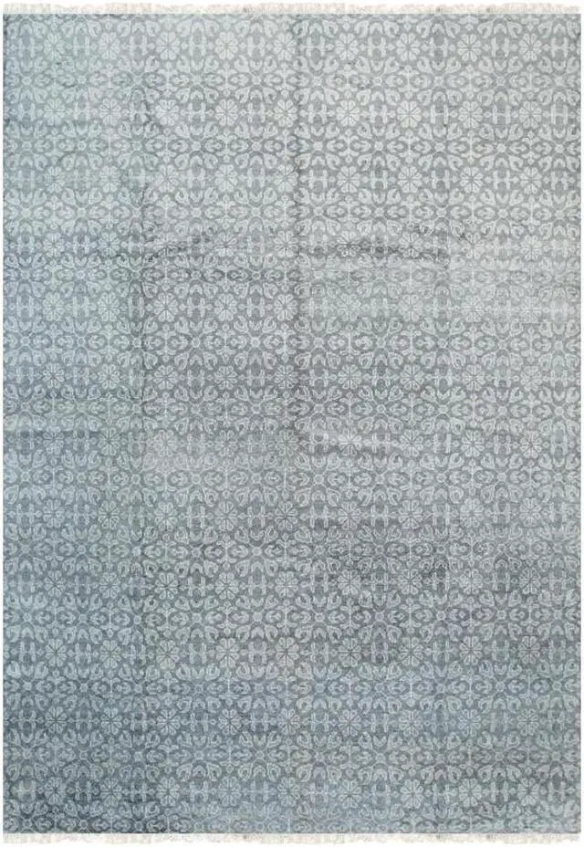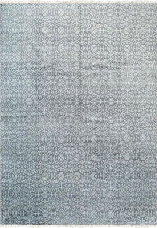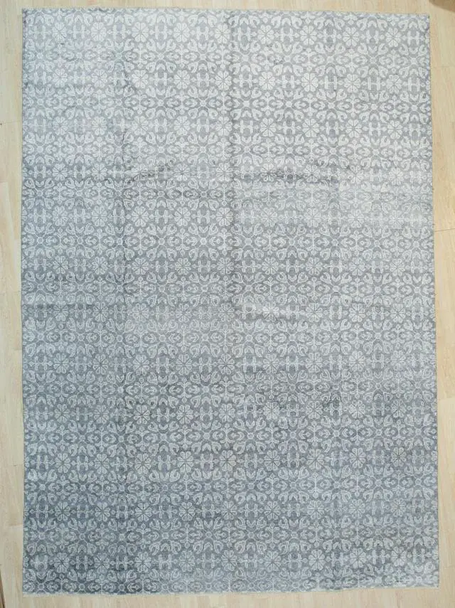 Hand Knotted Viscose Gray Transitional Modern Khotan Rug. Hand knotted and meticulously crafted by artisans this stunning Rug Hand Knotted Area Rug will invite quality and beauty into your home or office Viscose area rug. KEY_TAB Taking three or four months to complete this rug was handcrafted by skilled makers using a traditional hand-knotting technique a trade that’s been passed down and preserved for generations.. KEY_TAB Handmade in India from 100% viscose with a low pile this rug is great in spaces with heavy foot traffic thanks to its short stature. Hand knotted rug adds style and warmth to a space. This design is Khotan rug style and has a certain global appeal. The rug has a dense soft pile and excellent quality to ensure that you will enjoy the look and feel of your rug for years to come..